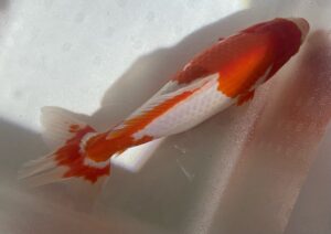 頭部の紅はハチワレのような模様になってます。こちらの個体の体高もかなり良いです。