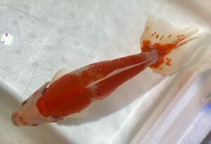 このミロクの兄弟魚では珍しかったフナ尾の個体。体高も良く、鹿の子柄も美しいです。